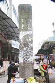 昨日記者專程來到中和鎮(zhèn)政府門前30米的一個(gè)街道拐角處看到,一塊高約5米的正方形石柱矗立在街道中央,石柱的正前方刻有“抗美援朝烈士紀(jì)念碑”9個(gè)楷體大字。碑的右面書有“謝興發(fā)、劉元明烈士,1951年12月30日敬立”字樣。紀(jì)念碑的四面都貼了不少廣告單,有“住房出租”、有“治療結(jié)核病”等,還有一些則是“性病?啤钡鹊。紀(jì)念碑基座上,還有生意人擺放了不少干雜貨物在此兜售。