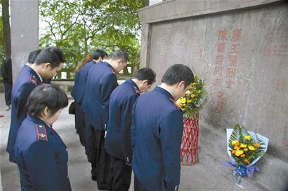 昨日,在此陵墓前,岳池縣國稅局的干部們前來悼念,并打掃了陵墓前的清潔衛(wèi)生。對(duì)于父母的烈士陵墓,廖亞彬坦言:“政府對(duì)我父母的英勇事跡沒有忘記,也經(jīng)常組織人員前來祭奠,我們很滿意!