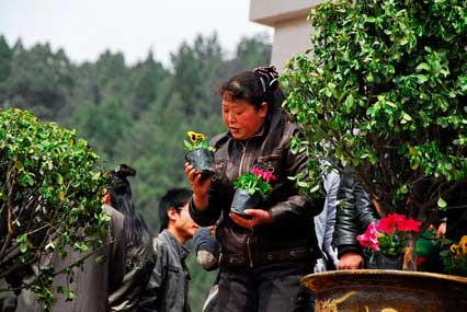 趙亞輝在博客上說,自己正在參加由人民日?qǐng)?bào)組織的跨時(shí)代回訪———“重走中國西北角”,4月4日正好趕上了一年一度在黃帝陵舉行的清明節(jié)公祭黃帝大典。自己祭拜完黃帝陵后,下山時(shí)再次途徑舉行大典的軒轅殿,卻被眼前的景象驚呆了:“廣場上不少人手里抱著一盆盆、一束束花,還有很多人正在搶著把擺放在大殿上下臺(tái)子上的小花盆拿走。