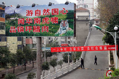 陜西鎮(zhèn)坪巨幅華南虎照廣告牌被悄然撤換(組圖)