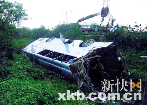 昨日上午,一輛粵港直通大巴從廣州中國大酒店出發(fā),經(jīng)廣深高速前往香港灣仔,9時(shí)13分在東莞厚街白濠路段,與一輛貨柜車追尾后失控,撞破路邊護(hù)欄墜入十多米下的排水溝,車上26名乘客不同程度受傷,其中部分是剛參加完廣交會(huì)的外籍客商,大巴司機(jī)麥某重傷后送院搶救,于下午5時(shí)不治身亡。受事故影響,該路段交通堵塞4個(gè)多小時(shí),被堵的車龍長達(dá)5公里。經(jīng)現(xiàn)場勘查,初步懷疑大巴車速過快導(dǎo)致車禍。