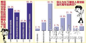 對“過青年節(jié)”,32.7%的人抱無所謂的態(tài)度,32.6%的人表示不喜歡過青年節(jié),他們認(rèn)為這個節(jié)日只是停留在名義上的傳統(tǒng)節(jié)日,諸如講座、演講之類的紀(jì)念活動毫無吸引力。
