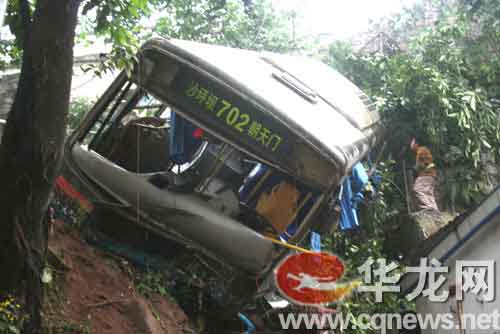 “哐當(dāng)……”今晨5:18分,牌號(hào)為“渝A25732”跨線經(jīng)營(yíng)的702中巴車,在嘉陵江大橋北橋頭墜下,險(xiǎn)些砸中重慶輕軌三號(hào)線川標(biāo)項(xiàng)目部食堂。
