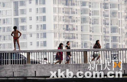 裸男站廣州大橋上做"英雄"狀 路過女子奔逃(圖)