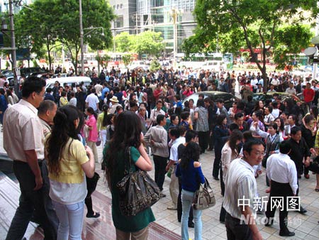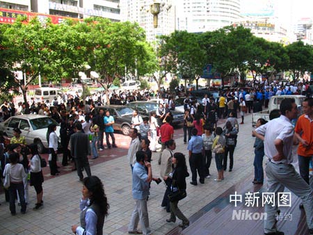 中新網(wǎng)蘭州5月12日電(劉薛梅) 今天下午兩點(diǎn)二十八分,四川汶川縣發(fā)生了七點(diǎn)八級(jí)地震,甘肅蘭州市有明顯的震感,市民們都紛紛往樓下跑去,大街上頓時(shí)聚集了不少人群。隨后街道上道處都是一片打電話的情景,詢問(wèn)家人是否平安。