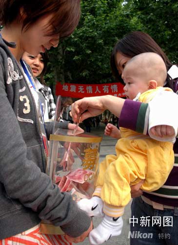 “地震無情人有情”,做善事不分國籍,這時有多位外籍人士也向募捐箱投下了一份愛心。在滬各界中外人士在1個半小時的時間內(nèi),共為災(zāi)區(qū)受災(zāi)群眾募捐到了人民幣兩萬多元及眾多救災(zāi)物資。完