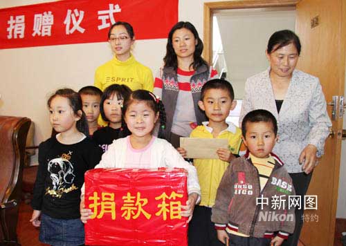 圖為在老師帶領(lǐng)下幼兒園的小朋友把捐款箱搬到了捐款現(xiàn)場(chǎng)。作 者:耿麗君