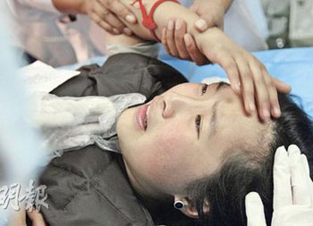 直升機(jī)把康潔送往位于成都的四川省人民醫(yī)院,5名醫(yī)護(hù)人員邊為她縫針邊安慰她:“別怕,你安全了!眻(jiān)強(qiáng)的小妮子沒流過半滴眼淚,更向醫(yī)護(hù)人員說:“請(qǐng)不要這么多人留在我身邊,你們?nèi)ゾ绕渌税桑 北娽t(yī)護(hù)人員見康潔堅(jiān)強(qiáng)懂事,無不動(dòng)容。