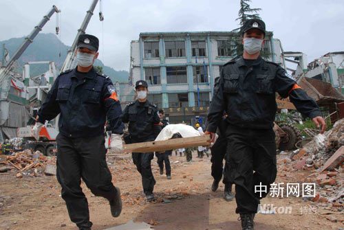 5月15日是災(zāi)后第3天,“時間就是生命”,廣東支援災(zāi)區(qū)的公安特警和公安邊防、消防武警官兵頑強(qiáng)拼搏,日夜奮戰(zhàn),以高昂的斗志爭分奪秒開展救援工作。