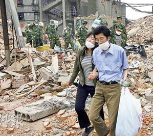 報(bào)道說(shuō),作為重災(zāi)區(qū)的綿竹,其受災(zāi)最嚴(yán)重的是漢旺鎮(zhèn),而漢旺鎮(zhèn)最多人被埋的地方即綿竹東汽中學(xué),該學(xué)校主樓一面墻和教室完全倒塌,只剩下幾個(gè)空架子。