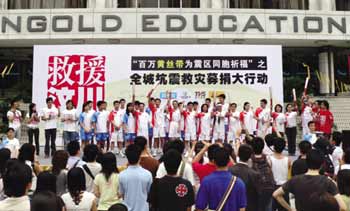 昨日下午2時(shí),由新快報(bào)、廣州電臺(tái)FM102.7、南方電視臺(tái)、新浪網(wǎng)四大媒體攜手廣東省慈善總會(huì),在正佳廣場(chǎng)西北門(mén)和廣東新快報(bào)社主樓前(天河路533號(hào)僑鑫教育大院)兩大主場(chǎng),舉辦“祈福同胞,愛(ài)心飛揚(yáng)———百萬(wàn)黃絲帶為震區(qū)同胞祈福之全城抗震救災(zāi)募捐大行動(dòng)”;顒(dòng)還在廣州崗頂好又多、天河城、江南西-廣百新一城、天河購(gòu)書(shū)中心-維多利亞廣場(chǎng)、正佳廣場(chǎng)、友誼商店-世貿(mào)、荔灣廣場(chǎng)南門(mén)-上下九、中華廣場(chǎng)-流行前線、北京路-廣百、新光廣場(chǎng)-康王路、越富大廈等11個(gè)繁華地段設(shè)50個(gè)流動(dòng)募捐點(diǎn),廣州青年志愿者協(xié)會(huì)還派出超過(guò)300名志愿者。