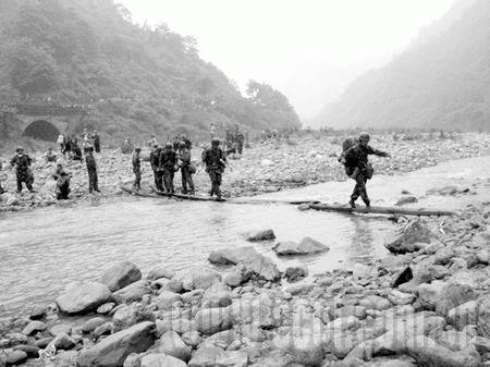 “我們在這里等候團長和戰(zhàn)友們回來,他率領(lǐng)部隊正引領(lǐng)數(shù)百災(zāi)民從高山密林中向漢旺轉(zhuǎn)移!鼻叭19時,有著“烏蒙鐵軍”之稱的解放軍某部團政委曾祥明站在亂石嶙峋的綿陽河上游河谷中,十分焦急地告訴記者,他們已與團長周宏許所率領(lǐng)的數(shù)百官兵失去聯(lián)系10多個小時了。