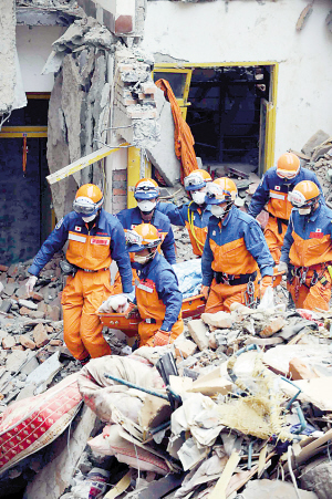昨晨(5月18日),在重災(zāi)區(qū)(四川。┚d陽(yáng)市北川縣北川中學(xué)施救現(xiàn)場(chǎng),多了幾十名國(guó)外救援者的身影——他們是日本國(guó)際應(yīng)急援助隊(duì)的隊(duì)員。截至昨下午1時(shí),日本救援隊(duì)已找到深埋樓底的6名學(xué)生遺體。