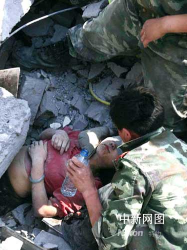 快11點半了,一名消防戰(zhàn)士輕輕托起袁藝的上半身,自己鉆入她的身下,用自己的身體作為滑板慢慢把袁藝往上拉。11點半的時候,被埋105個小時的袁藝終于成功獲救。
