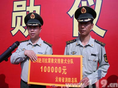 中新網(wǎng)6月12日電 6月6日下午,云南消防總隊在昆明消防訓(xùn)練基地隆重舉行儀式,授予赴川抗震救災(zāi)的“銀虎”、“昆虎”、“小虎”、“金雕”、“菲離”、“威嚴(yán)”、“飛雄”7條搜救犬“汶川抗震救災(zāi)英雄犬”稱號。云南消防總隊總隊長王子崗向受表彰的英雄犬頒發(fā)了10萬元獎金。