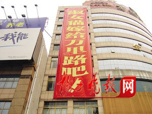 而為這次特殊的“求婚”,戴先生說他前后已經(jīng)準備了一周的時間。條幅做好后,他先后在鼓樓廣場附近找了好幾家大廈,但由于種種原因沒有掛成,最后,當他把想法告訴金龍大廈負責人后,馬上得到了同意。當天上午,他和朋友等5個人花了1個半小時,才把條幅掛好。而對于條幅上面為什么只注明網(wǎng)名、而不寫雙方的真實姓名,戴先生說:“我們相識于網(wǎng)絡,是通過網(wǎng)名相戀的。再者,求婚是對女友一個人,只要她心知肚明就行了!