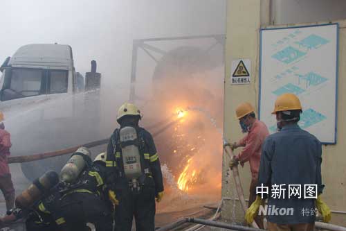 據(jù)該公司相關(guān)人員介紹,大貨車兩個(gè)槽罐共裝載了18噸黃磷,13號晚上從貴州運(yùn)抵南寧后,一直就停在公司里面。上午10點(diǎn)左右,靠近車頭的槽罐底部突然泄漏,泄漏的黃磷遇空氣后自燃,導(dǎo)致火災(zāi)的發(fā)生。