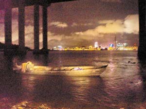 事發(fā)當日晚7時20分左右,廣東邊防總隊第五支隊兩名執(zhí)勤哨兵在距離澳門葡京賭場只有一水之隔的珠澳邊防線上巡邏時,發(fā)現(xiàn)橫琴大橋底下一名男子撐著一條小木船正慢慢地向澳門方向劃去,形跡可疑。