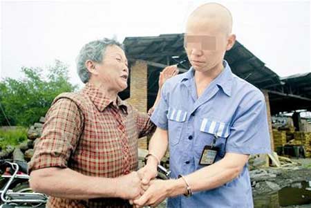正說(shuō)著,父親跌跌撞撞地跑過(guò)來(lái)!皟鹤,您要是不好好改造,我這把老骨頭也許再看不到你了!”回頭看見(jiàn)陪同在鄧某身后的獄警負(fù)責(zé)人范仲根時(shí),老人一把拉住他的手,突然間跪倒在范仲根前嚎啕大哭!岸嗵澞銈冏屛覀儓F(tuán)聚,不然我這把老骨頭真的難以見(jiàn)到兒了!”鄧的父親在地震中左肩受傷,經(jīng)治療后已基本恢復(fù)健康。范仲根把監(jiān)獄為鄧某特意準(zhǔn)備的500元災(zāi)后慰問(wèn)金遞上去,老人怎么也不肯收。老人說(shuō),能讓他們父子見(jiàn)面已感激不盡,再也不能給政府添麻煩。在其他干警勸說(shuō)下,老人這才接過(guò)慰問(wèn)金。一行人在鄧家?guī)づ駜?nèi)落座后,鄧某的父親又先后3次下跪,以示對(duì)監(jiān)獄管理局的感謝。