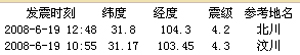 又訊:今(19)日12時(shí)48分,北川( 31.8 104.3)發(fā)生4.2級(jí)余震。