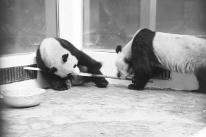 前晚,“希望”和“偉偉”住進(jìn)武漢動物園熊貓館后,先花10余分鐘把臥室嗅了個(gè)遍,熟悉環(huán)境后,抱著飼養(yǎng)員送進(jìn)的竹子吃起來。臨睡前,飼養(yǎng)員給它們送進(jìn)一盆水,喝光后,兩個(gè)小家伙對鋁合金水盆產(chǎn)生了濃厚興趣,把它當(dāng)玩具拖過來,拉過去,搶到手后就用嘴咬,將嶄新的水盆咬得像篩子。