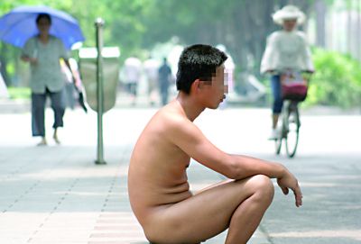雖說裸男不攻擊行人,年輕姑娘們看見了還是躲著走。一位頭發(fā)斑白的老先生還特意停下自行車撥打報警電話,要求警方來處理街頭裸男。