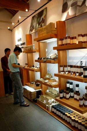 踏入少林歡喜地的店門,立即就會有工作人員迎上去,為游客介紹店內特色。店內除了有裝潢新穎的商品銷售場所和設計廊,為游客提供清涼舒適的休憩和餐飲的禪露素食餐廳外,還專門設有少林文化禪修及功夫和少林茶席免費體驗場所。在免費體驗區(qū)不但能學到簡單禮佛動作和了解少林文化外,“品禪茶,靜心音”更是讓游客回味無窮。據(jù)店內負責人介紹,店內設置的免費體驗區(qū),未來還會有寺內僧人作引導師,帶領游客親身了解少林的禪、武文化,在全國景區(qū)內首開先河。