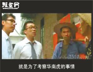 事隔4個多月后,近日“周老虎”還原真相成了紙老虎。隨后記者在斑點網(wǎng)等視頻網(wǎng)站上看到,從6月30日開始,全長27分47秒的視頻小電影《拍虎》也被傳到網(wǎng)上,片中周正龍被稱為“周震聾”,因為林業(yè)局張局長承諾“如果當?shù)卮迕裨谖覀兛疾礻犨M山之前能發(fā)現(xiàn)華南虎,我們會給一箱錢作為獎勵”,于是“周震聾”十分興奮,上山尋虎十幾天,最后與人密謀通過年畫拍出華南虎照片。全片最后表現(xiàn)“周震聾”在事情敗露后,從山崖摔下導致失憶,人也變得瘋瘋癲癲,成天抱著個假老虎模型唉聲嘆氣。