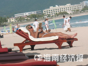 記者連日來在大東海景區(qū)看到,有外國女游客在沙灘上或一人或三五成群,穿著泳褲裸露上半身在沙灘的躺椅上曬太陽、看書,泰然自若;蛟S是因沒趕上裸泳時間,沒看到裸泳者。