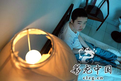 坐在床上白血病患者李萬(wàn)宇 實(shí)習(xí)記者 曾永洪/作
