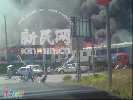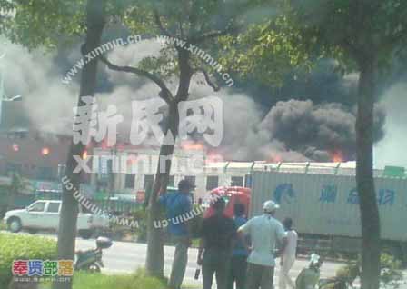 2008年7月17日下午2點(diǎn)30分,新民網(wǎng)接到網(wǎng)友報(bào)料稱,奉賢區(qū)齊賢鎮(zhèn)有工廠大火,預(yù)計(jì)損失2億,現(xiàn)有50多輛消防車到場。新民網(wǎng)記者電話連線網(wǎng)友楊先生,楊先生稱現(xiàn)場就像原子彈爆炸一樣,天空全黑了。