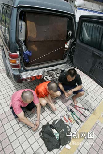 警方現(xiàn)場繳獲吉普車內(nèi)的液壓剪、扳手等作案工具一批。經(jīng)檢查,被盜大貨車的油箱內(nèi)約有70升柴油已被吸入吉普車的油罐。根據(jù)估計,吉普車內(nèi)的油罐容量有1噸左右。