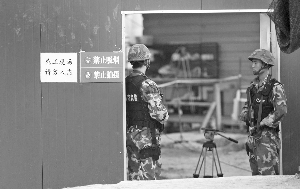 武警戰(zhàn)士荷槍守衛(wèi) 快報(bào)記者 施向輝 攝