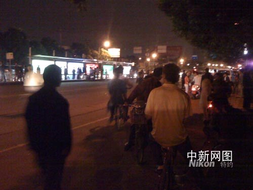 圖為發(fā)生事故的現(xiàn)場,事故公交車被快速拖走后,還有數(shù)百名市民在圍觀。王林 攝