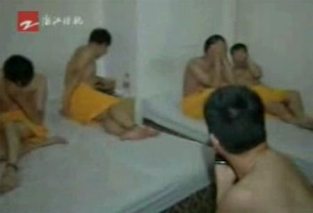幽暗的燈光下,三、四十個(gè)男子脫光衣服躺在浴室休息大廳的椅子上,正在明目張膽地……突然,隨著突如其來民警一聲:“不許動(dòng)”,讓這些男人們個(gè)個(gè)目瞪口呆!