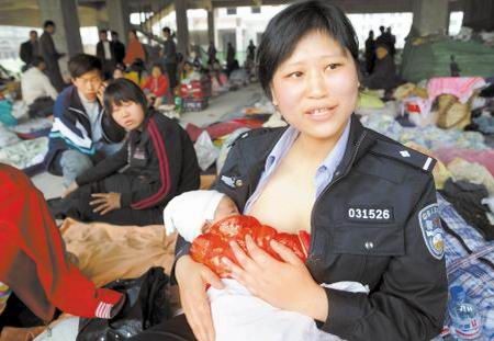 記者:地震時,你的孩子才6個月,當時被迫中斷了喂奶,有沒有覺得對不起孩子?