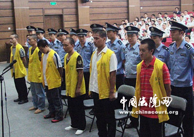 九江市中級(jí)人民法院院長陳堅(jiān)親自擔(dān)任審判長主審該案。吳曉劍、任忠杰、王曉海、楊曉大、吳曉安、劉曉剛等六名被告人涉嫌三項(xiàng)罪名出庭受審。被害人許俊谷景的母親到庭參加訴訟。許俊谷景的部分親友、生前所在單位的同事、海軍后勤部九江基地官兵及社會(huì)各界三百余名群眾到庭旁聽了案件的審理。