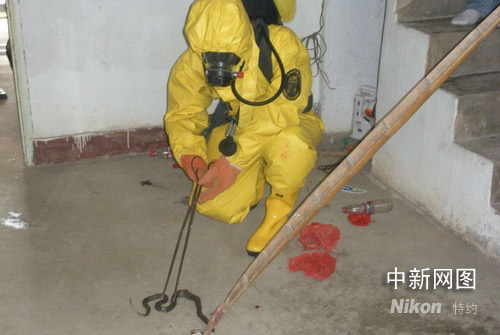 據(jù)現(xiàn)場(chǎng)一位有豐富捕蛇經(jīng)驗(yàn)的老伯介紹,闖入民宅的為眼鏡蛇,系劇毒蛇,人一旦被咬傷后一般約在一至四小時(shí)左右才出現(xiàn)全身中毒狀,一旦發(fā)作就難以控制,嚴(yán)重者昏迷、呼吸停止,死亡率為百分之八十。