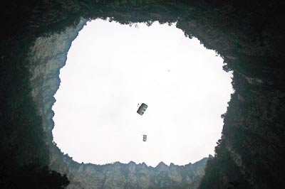 運(yùn)動(dòng)員從天坑頂部跳下