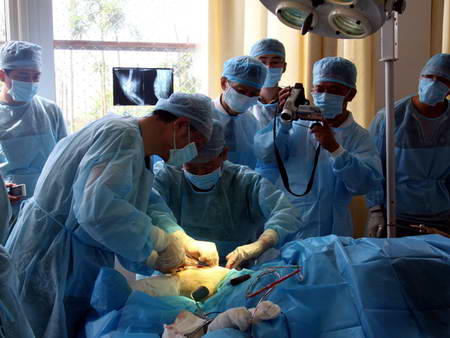 基地專家告訴四川新聞網(wǎng)記者,骨科手術(shù)要求很嚴(yán),在所有手術(shù)中僅次于心臟手術(shù),稍有不慎就可能造成感染引發(fā)骨髓炎,并有截肢的危險。為確保手術(shù)萬無一失,基地獸醫(yī)與成都軍區(qū)八一骨科醫(yī)院的專家反復(fù)討論手術(shù)方案,為減少運(yùn)輸和增加感染,專家一致決定將手術(shù)地點(diǎn)確定在基地的新獸醫(yī)院。