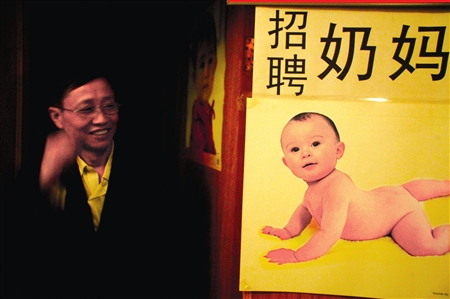 奶媽的奶媽公司。據(jù)負(fù)責(zé)人張光福介紹,近段時(shí)間到這里來(lái)報(bào)名的奶媽每天都有好幾個(gè),咨詢(xún)雇傭奶媽的電話(huà)也不斷。