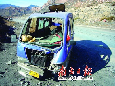 昨日上午,本報(bào)記者實(shí)地踏訪事發(fā)周邊區(qū)域。山被炸開的痕跡白花花地暴露在烈日之下。山腳之下,丁學(xué)聰老漢的院子落滿了“石頭雨”,院子里的碎石整整裝了2車手扶拖拉機(jī),還沒(méi)有清理完。他的33間房子被砸毀20余間,老漢欲哭無(wú)淚。就在他的鐵板房?jī)?nèi),何老漢被砸破屋頂?shù)氖^砸到腰間,當(dāng)場(chǎng)死亡。大院的外邊,兩顆兩個(gè)籃球大小的石頭將堅(jiān)硬的地面砸出兩個(gè)深坑。