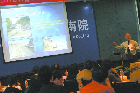 昨日,由美國土木工程學會、中國巖石力學與工程學會共同主辦的“成都地震生命線座談會”在成都中鐵西南科學研究院順利召開,來自中美的權(quán)威地質(zhì)專家,就地震預測、監(jiān)測,以及地震后通訊、交通、電力等生命線系統(tǒng)的修復、重建問題進行研討。中國礦業(yè)大學(北京)力學與建筑工程學院院長何滿潮現(xiàn)場演示了汶川地震物理模擬動態(tài)實驗,認為通過模擬實驗可以分析出地震前板塊運動曲線有一定不尋常的規(guī)律,相信之后通過地震預測、監(jiān)測系統(tǒng)的研制及完善,在相應的斷層安放監(jiān)測儀器,可以成功在地震前實施較為準確的預報。
