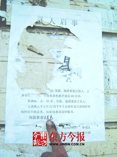 昨日上午,記者在秦西運(yùn)所住的家屬院大門口見到了那張已經(jīng)殘缺的“尋人啟事”,上面寫的與秦西運(yùn)描述的一樣。