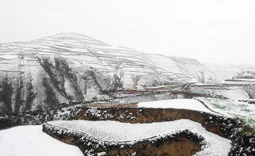 老人身后的一棵柳樹,幾根枝條已被積雪壓斷。記者沿著泥濘的山路步行, 道路兩旁被積雪壓斷枝條的樹木隨處可見。在一處山腳下,一棵直徑約七八十厘米的白楊樹竟被攔腰折斷。崔效賢老人告訴記者,10月21日晚7時許,村子里下起了雨,到了晚上10時許雨就變成了鵝毛般的雪花。誰也不會想到這場雪會給村上的林木帶來一場災(zāi)難。另一位村民說,菜子山村有菜子山、西溝、焦家磨等5個社,幸虧農(nóng)作物基本上都收完了,地里就剩下些蓮花菜和蔥,厚達(dá)20多厘米的積雪消得也快,因此損失不大。