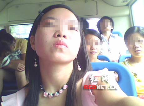 網(wǎng)友“冷秋香”在公交車上,仰望45°的自拍。