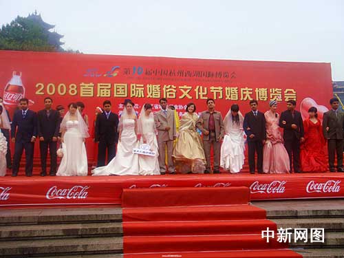 中新網(wǎng)杭州10月25日電(柴燕菲 方心怡)今天的西子湖彌漫著濃濃的幸福味道。在今天開幕的二00八首屆國際婚俗文化節(jié)上,來自印度、巴基斯坦等國的十余對異國新人在愛情之都杭州喜結(jié)良緣。