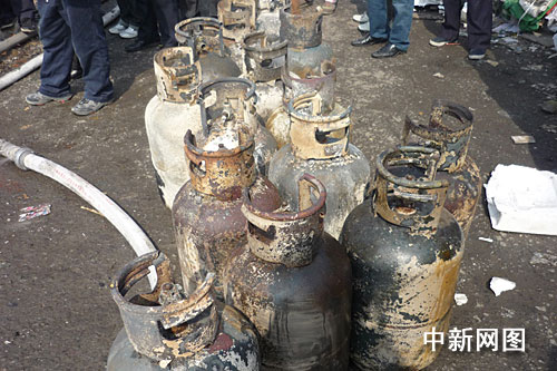 官兵們在火場中搶出的煤氣瓶