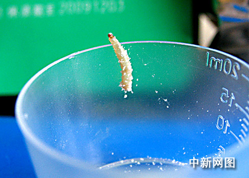 10月14日早晨,王女士給醒來的寶寶沖泡奶粉。她拆開了一包400克裝的“金裝多美滋學1加”奶粉,朦朧中看到一個東西在蠕動。挖出來一看,是條1.5厘米長的粉白色肉蟲。