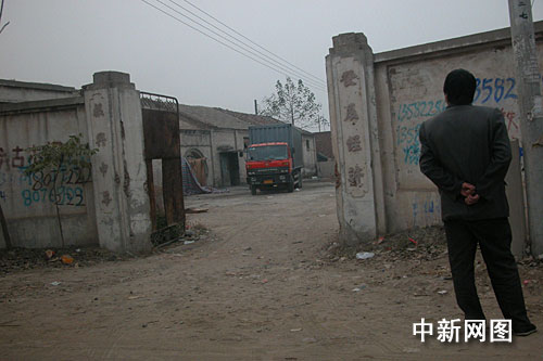 十二日下午四時許,記者在位于河北省安新縣老河頭鎮(zhèn)沈家坯村口一廢棄的糧庫門前見到,有多輛警車停放路兩邊,十幾名警員出出進進,糧庫院內(nèi)停有一“危爆物品運輸車”及一輛密封運輸車,有幾名村民正在往車上裝東西。